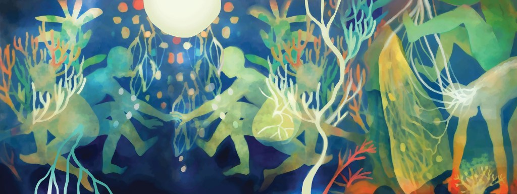 The exhibition is both an elegy to lost forests and reefs, and an evocation – calling up energy to restore these natural systems.
